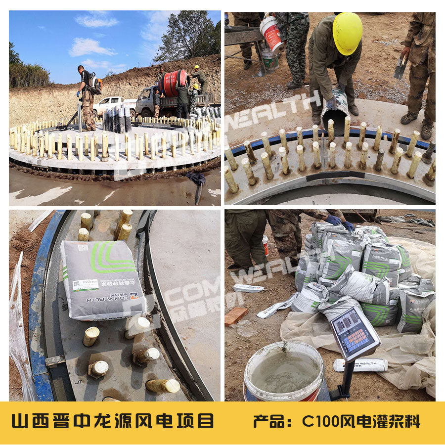 山西晉中龍源陸上風(fēng)電基礎(chǔ)底座加固項目,應(yīng)用于我司C100風(fēng)電灌漿料產(chǎn)品